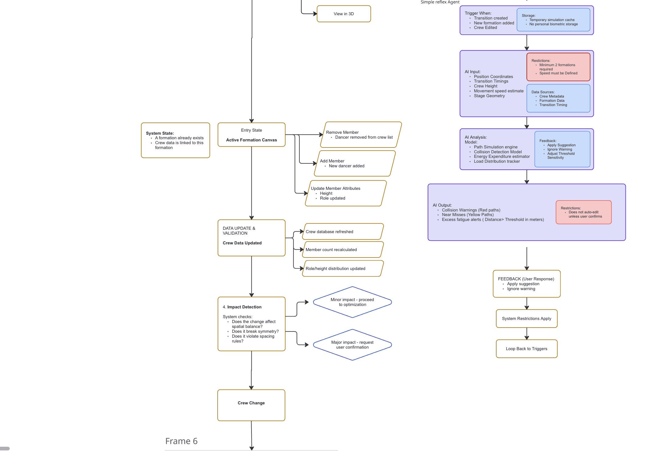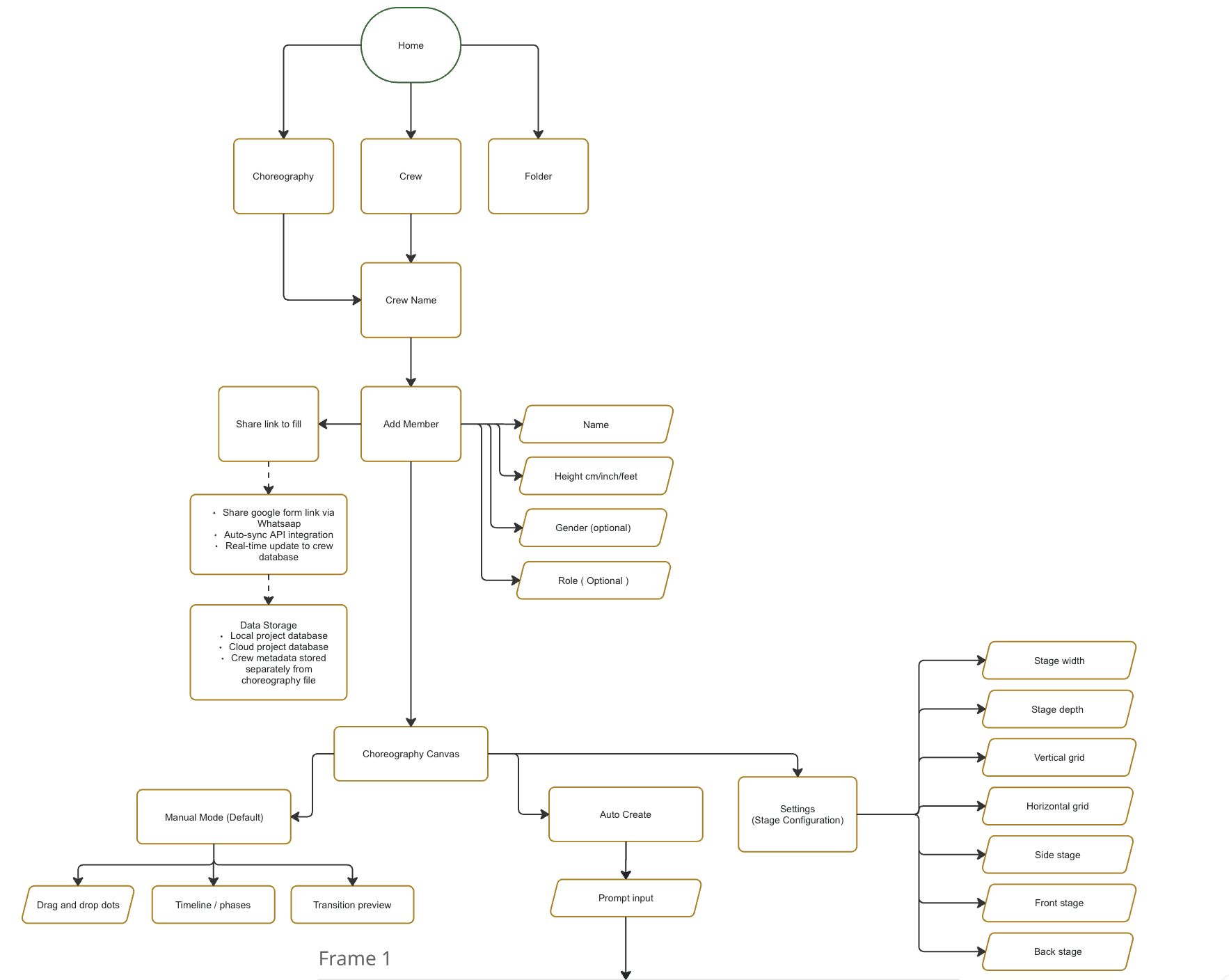 Before designing interfaces, mapped the full choreography workflow into a structured system of formations, crews, timing layers, and spatial rules creating a foundation where creativity could move faster without breaking down.