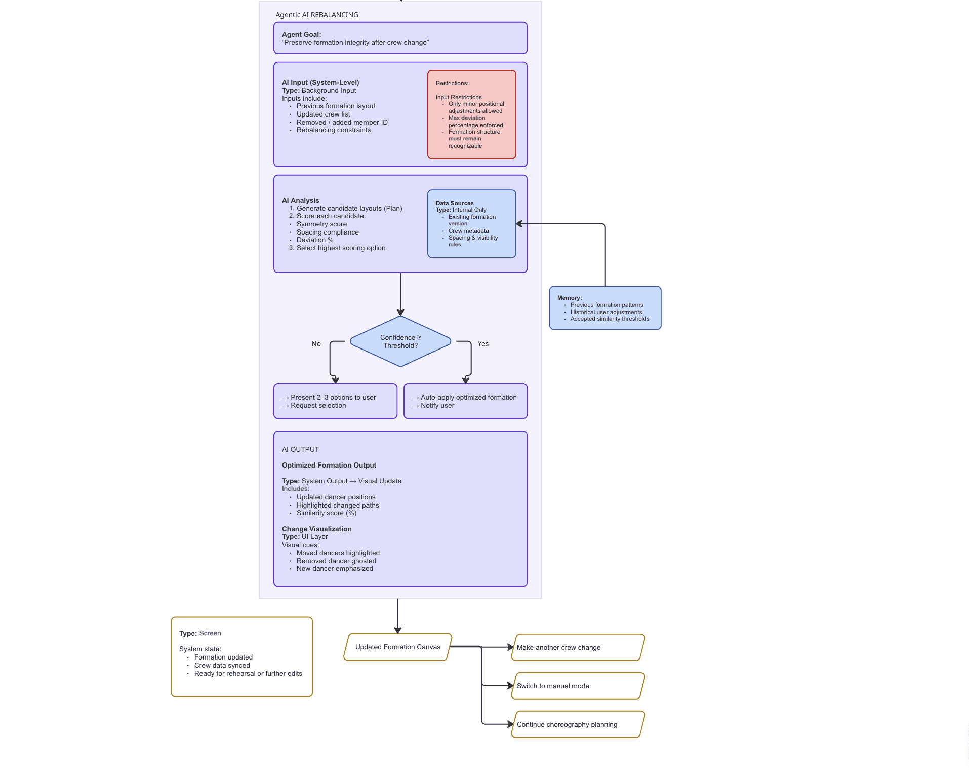 I transformed formation planning from manual spatial guesswork into an AI-assisted creative workflow enabling choreographers to generate, test, and adapt formations in real time.