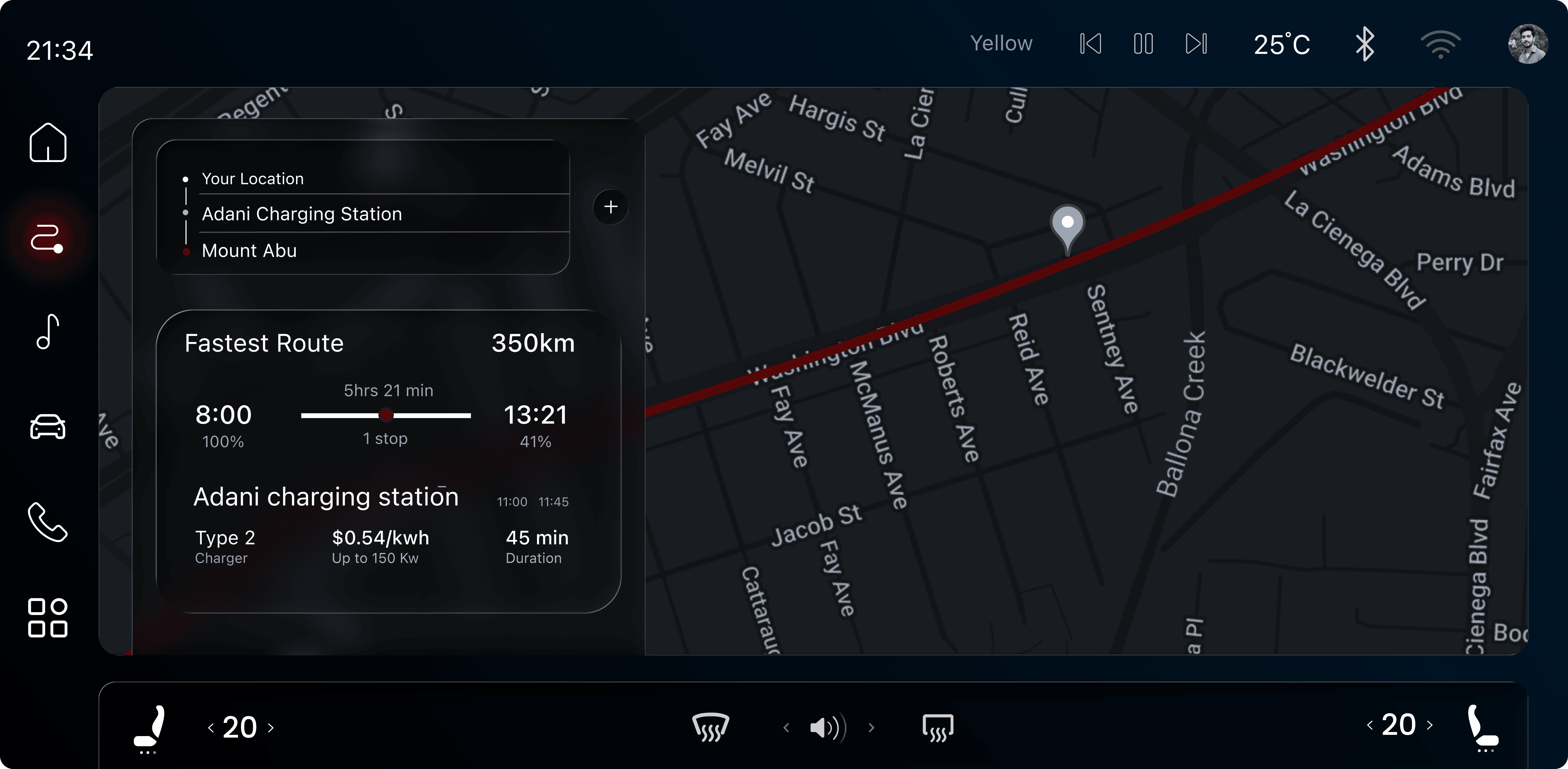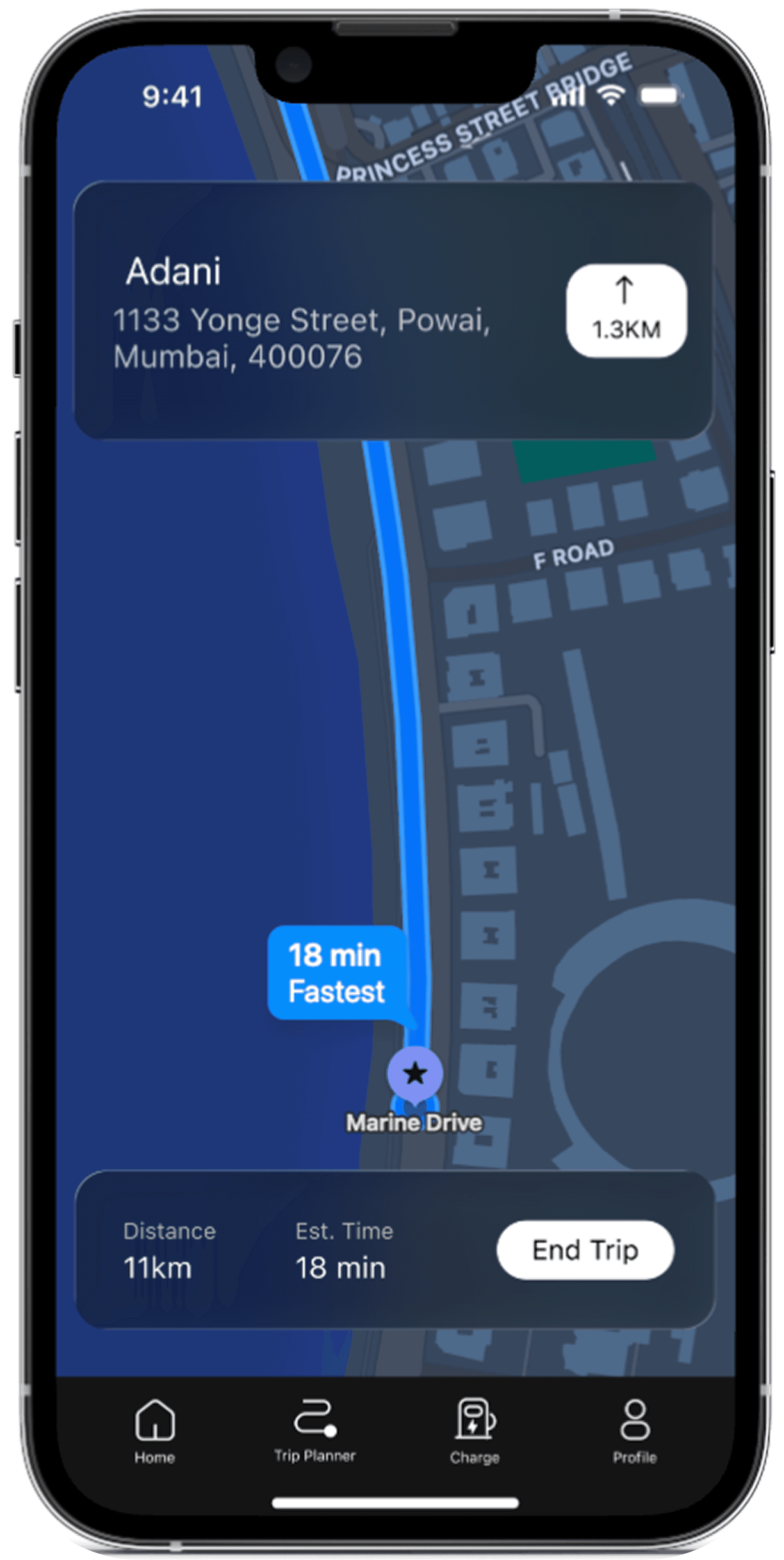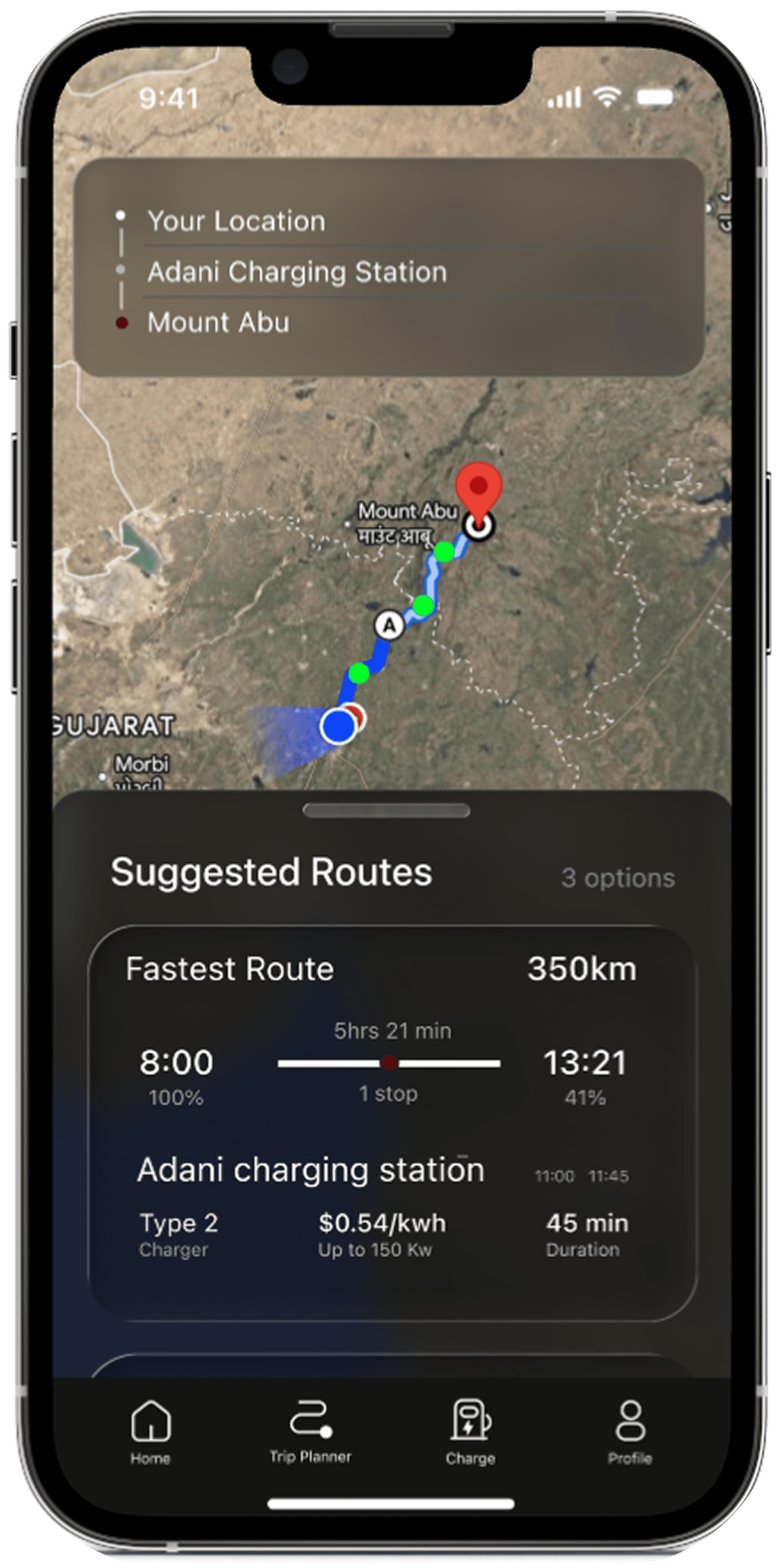 Intelligently plans your EV journeys predicting energy usage, recommending optimal charging stops, and recalculating routes in real time so you always stay in control.