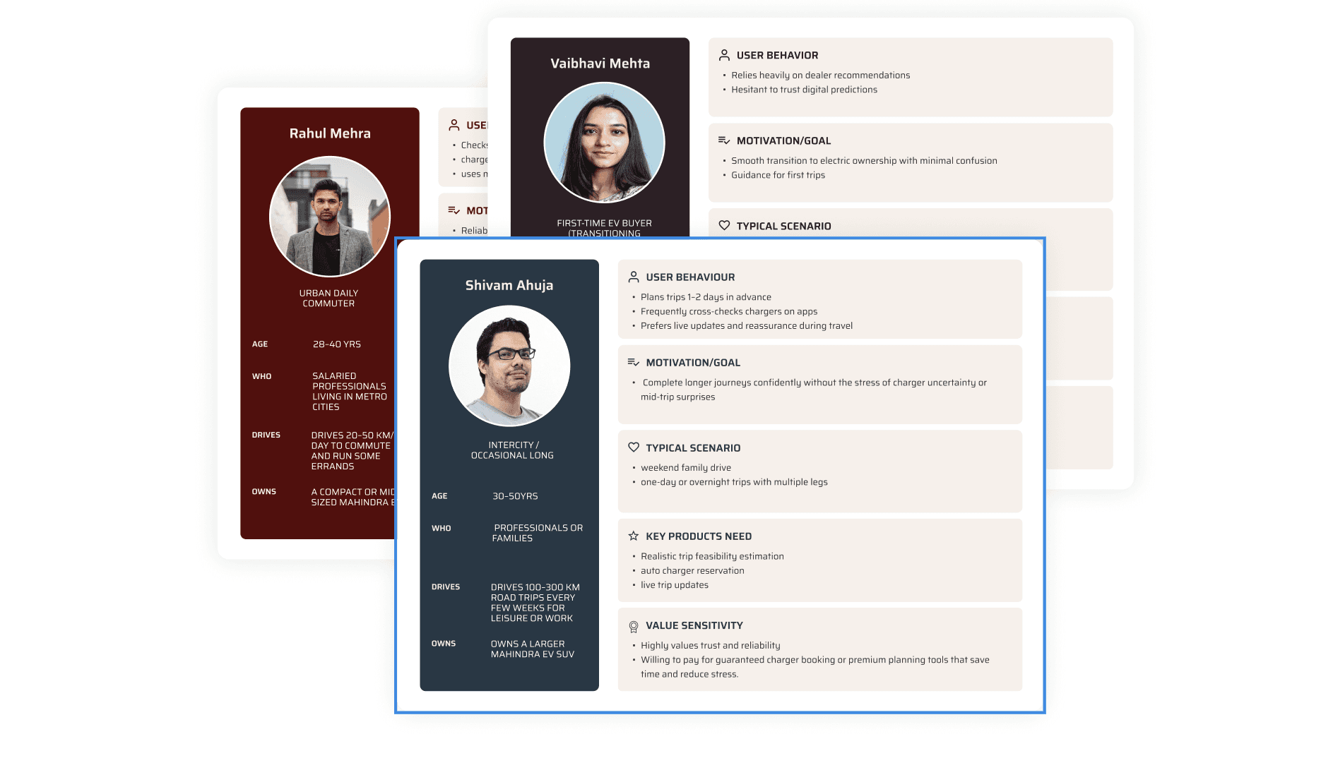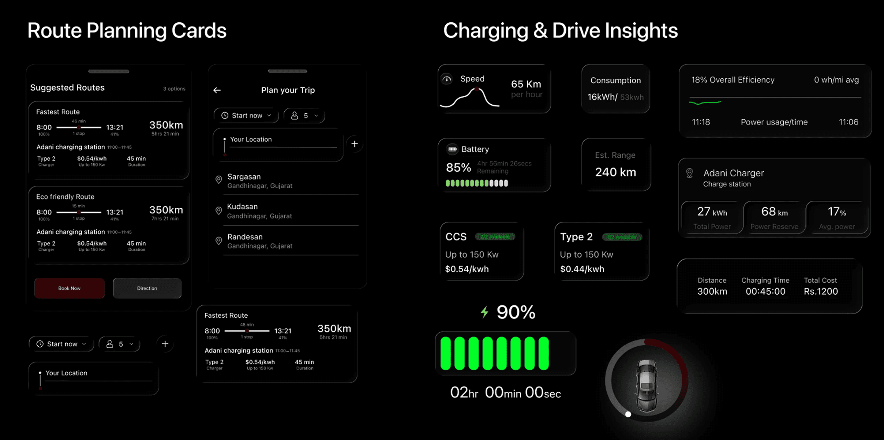 Through conversations with drivers and experts, I identified key pain points around energy awareness, charging friction, and navigation inefficiencies.