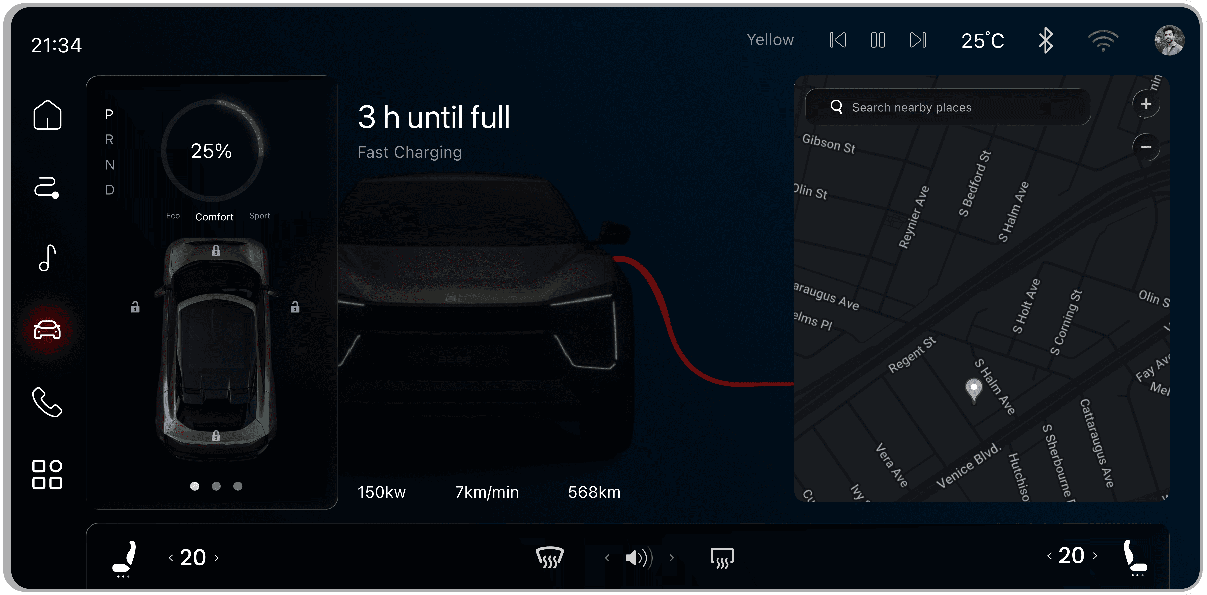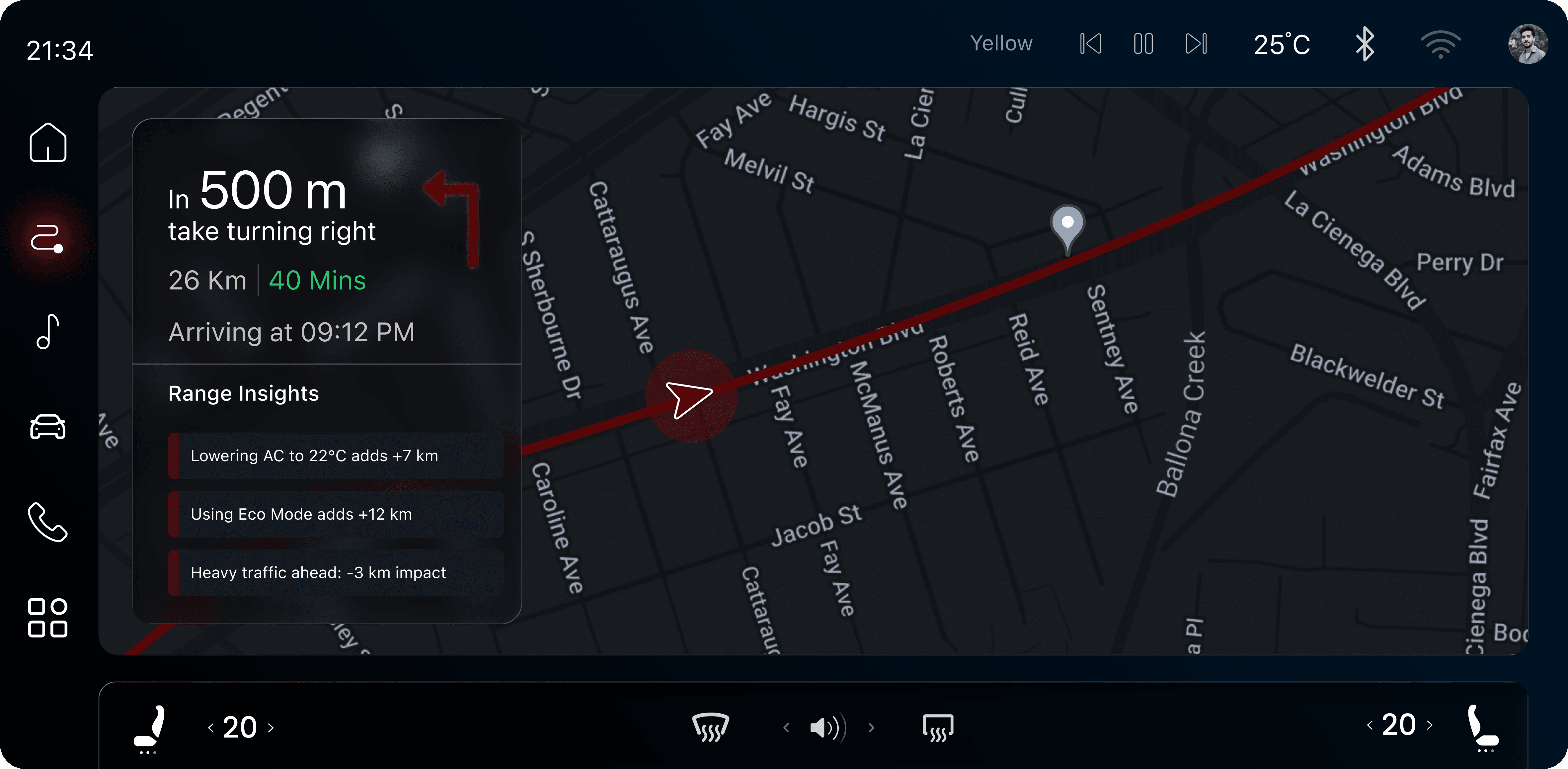 An intelligent HMI that predicts range, plans charging, and adapts routes in real time.