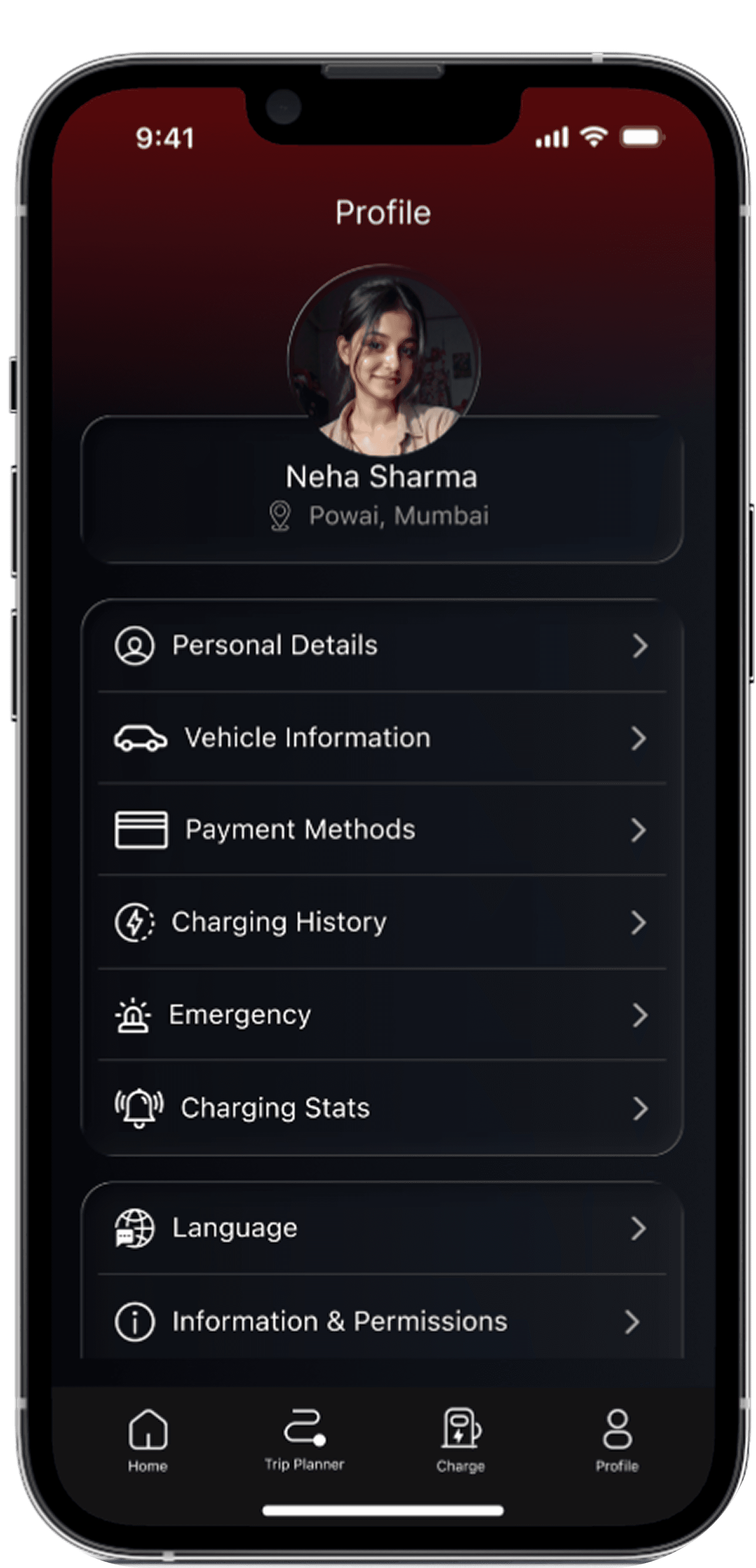 Personal Details, Charging History, Payment and Emergency - All in one?