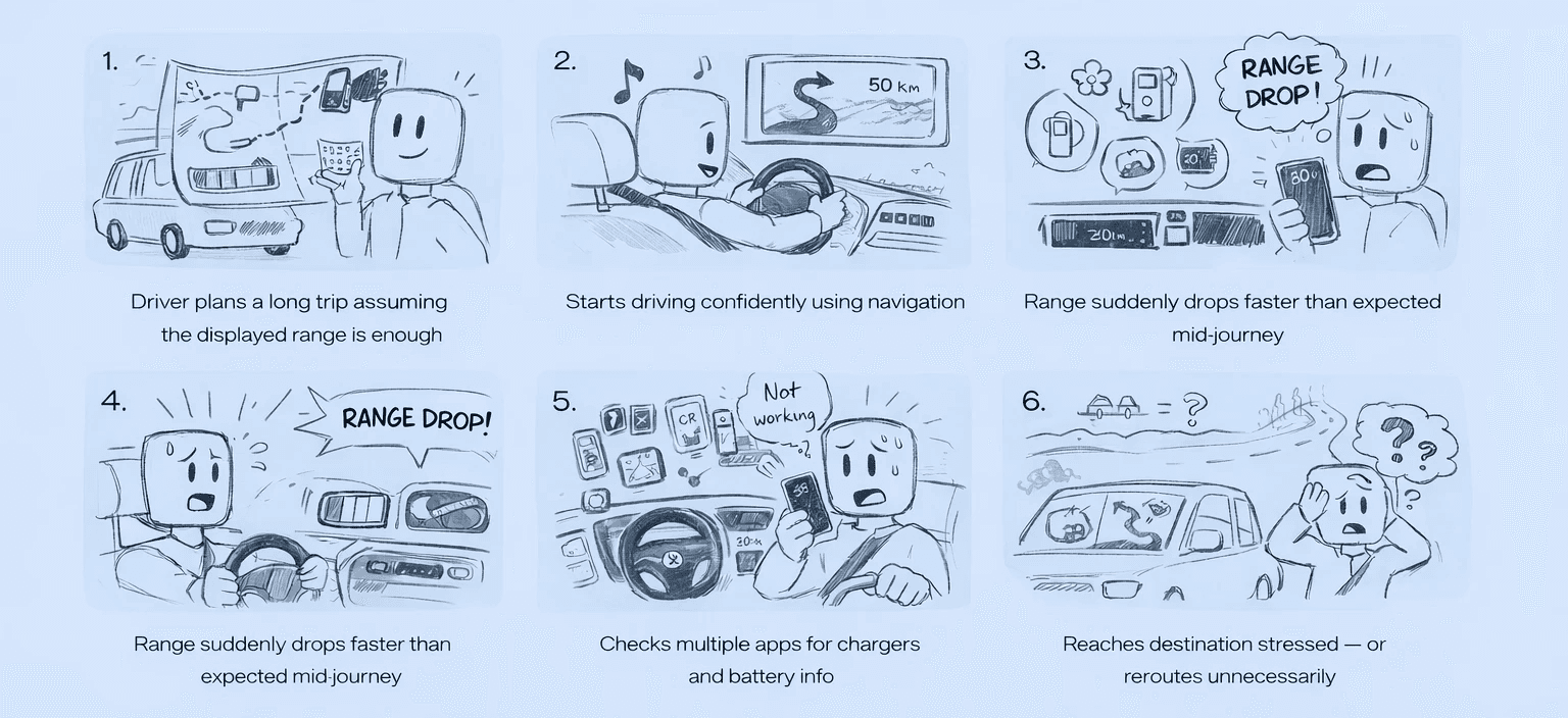 Through deep user research, system thinking, and experience design, we created a connected platform that simplifies trip planning, improves charging decisions, and builds trust across every journey touchpoint.