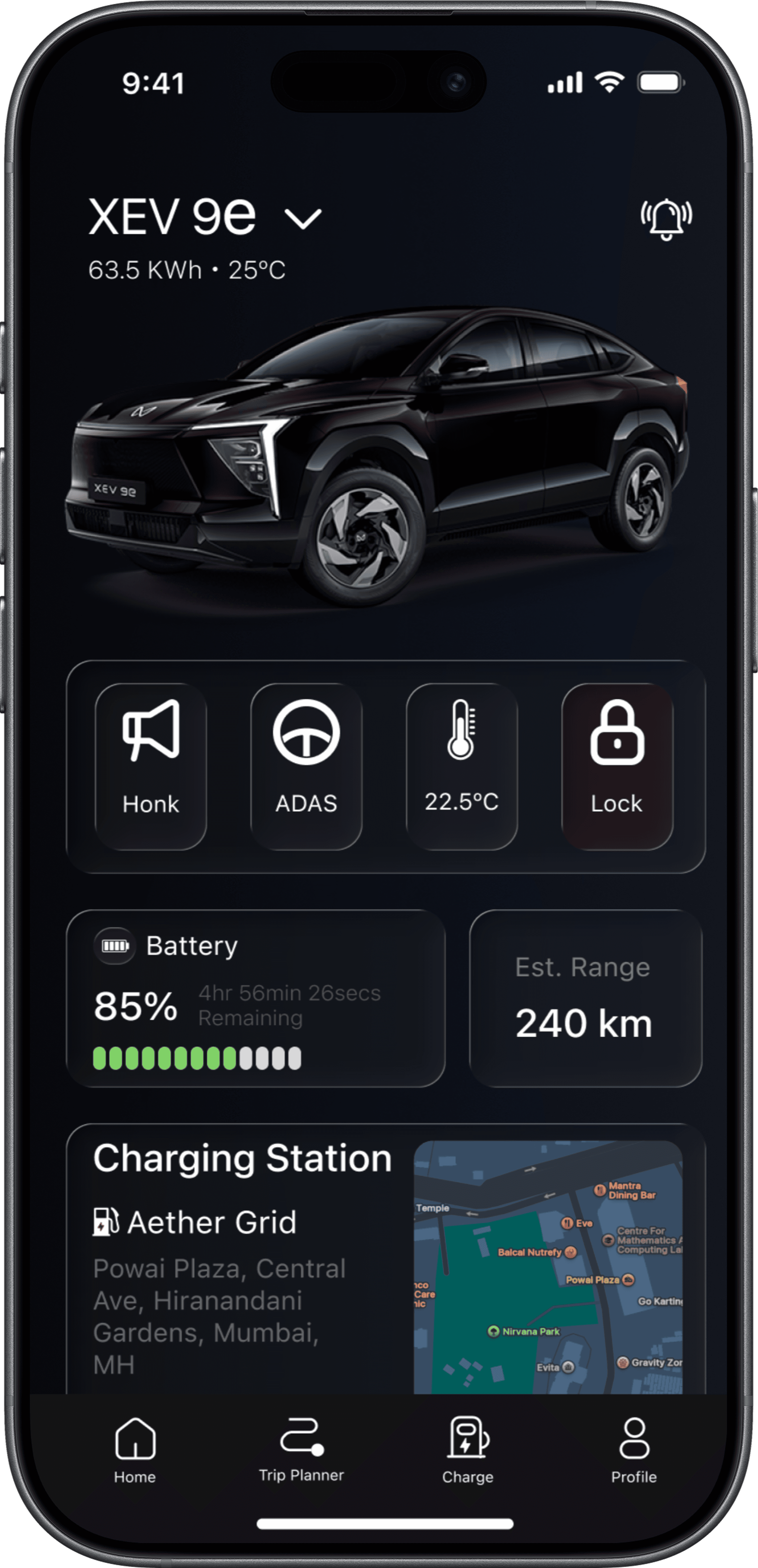 Seamlessly control your vehicle, manage charging, get alerts, and access essential features for a superior electric driving experience.